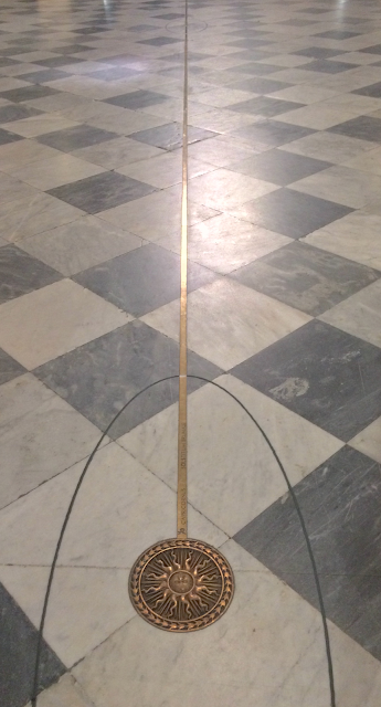 | The meridian line runs north to south through the nave of the church. The church is a bit off center. |